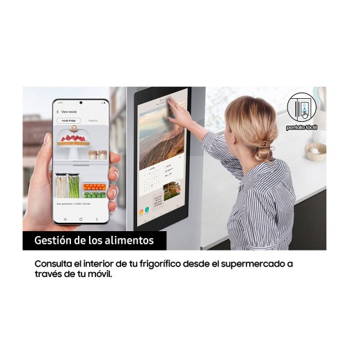 SmartThings: controla el resto de electrodomésticos conectados a través del frigorífico; Gestión del Frigorífico. Controla la temperatura del frigorífico y congelador, status del filtro del agua, etc; Ring: permite visualizar a través de accesorio Ring (portal de la puerta, dormitorio por ejemplo); Bixby: precargado únicamente la versión en inglés. NO disponible en español a corto plazo. Se podrá actualizar el software una vez esté lista;