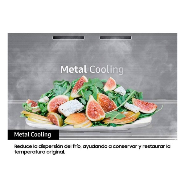 Placa metálica en el interior del frigorífico que reduce la dispersión del frío, ayudando a conservar y restaurar la temperatura original, independientemente de cuántas veces abras y cierres la puerta.