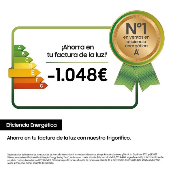 Más espacio interior manteniendo el mismo tamaño exterior. Samsung ha reducido el grosor de las paredes maximizando la capacidad interior alcanzando hasta 627 litros de capacidad.