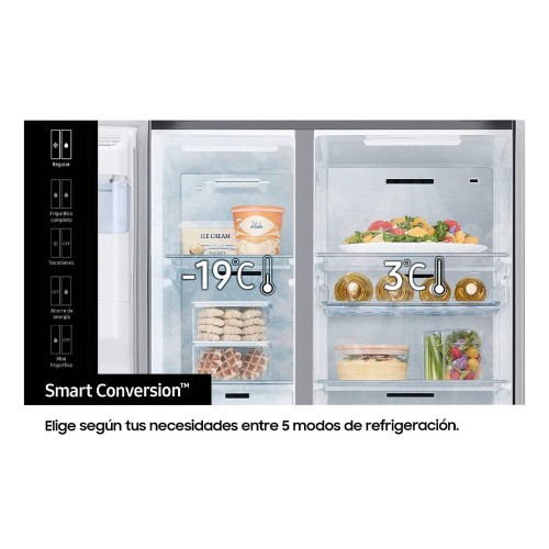 El diseño de este frigorífico encaja con tu cocina para crear un aspecto minimalista y elegante. Su profundidad un profundida de 716mm[2] para almacenar todo tipo de alimentos.Puertas lisas, dispensador de agua integrado y una parte trasera limpia que se completa con un interior de baldas tintadas en gris y un display oculto.