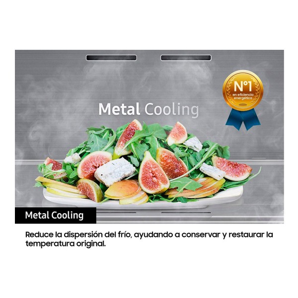 Mantén la temperatura óptima para que los alimentos estén frescos aunque abras y cierres la puerta continuamente. La placa Metal Cooling de la parte trasera retiene el frío y ayuda a reestablecer cualquier pérdida rápidamente. Además, otorga un aspecto premium y es fácil de limpiar.