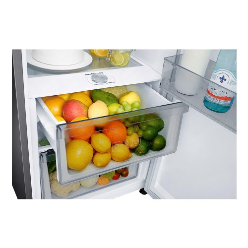 Mantén frutas y verduras frescas durante más tiempo en el cajón para verduras con control de humedad. Tiene tamaño suficiente para almacenar alimentos grandes y ajusta el nivel de humedad constantemente abriendo y cerrando el conducto de ventilación para mantenerlo perfecto.