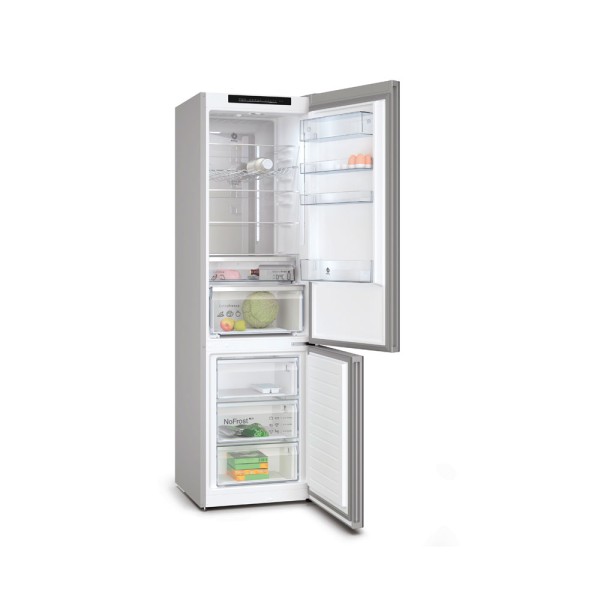 Este frigorífico integra el sistema No Frost y la función Superfrío, enfriando rápidamente el compartimento a la temperatura más baja para almacenar grandes cantidades de alimentos. La Supercongelación automática en el congelador garantiza una congelación rápida, activándose al colocar alimentos frescos en el cajón inferior derecho. La iluminación LED, eficiente y de larga duración, ilumina cada rincón, permitiendo una visibilidad total y contribuyendo al ahorro energético.