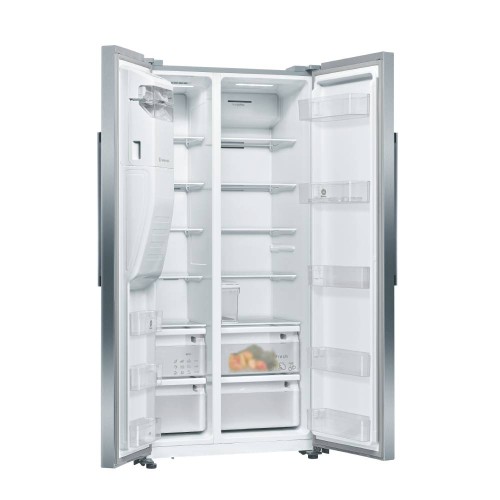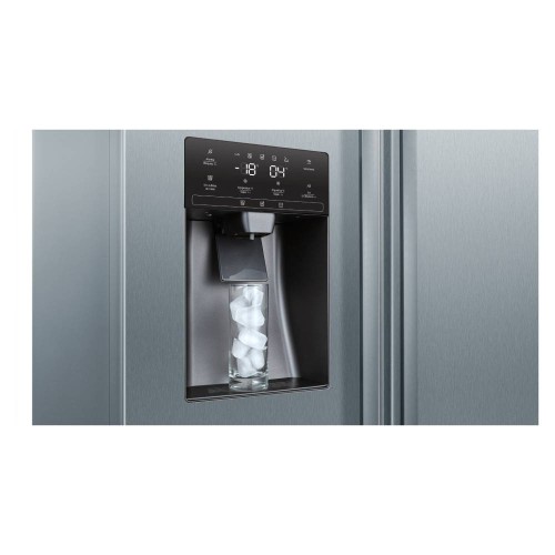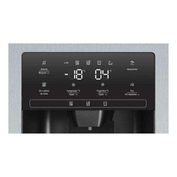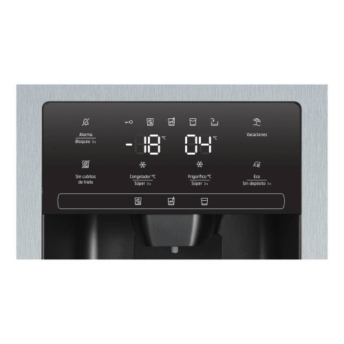 El frigorífico americano Balay 3FAE494XE representa la fusión perfecta de funcionalidad y estética moderna. Su acabado en acero inoxidable antihuellas no solo aporta un toque de elegancia a tu cocina, sino que también garantiza que la superficie permanezca impecable, libre de marcas y huellas, facilitando así su limpieza y mantenimiento. Este modelo se destaca por sus tiradores externos verticales, diseñados para maximizar la comodidad y eficiencia al abrir las puertas. Además, el dispensador integrado de hielo y agua en la puerta, con su iluminación LED, te ofrece una experiencia de uso excepcional, permitiendo un llenado preciso y cómodo de tus vasos o jarras. El diseño del dispensador, integrado sin marcos ni rincones, refleja un enfoque minucioso en cada detalle, asegurando no solo un aspecto elegante sino también una limpieza sin esfuerzo. En su interior, este frigorífico se equipa con un innovador fabricador de hielo y depósito de agua, junto a un cajón para frutas y verduras con regulador de humedad, estantes extraíbles y cajones BigBox, brindando una versatilidad y organización sin igual para todos tus alimentos y bebidas.
