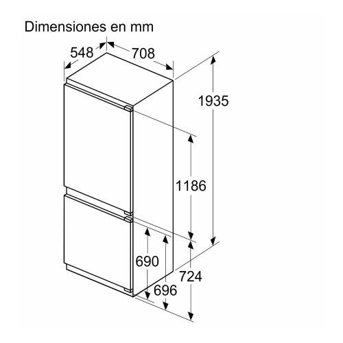 El frigorífico Balay 3KIE934F ofrece un volumen total útil de 383 litros, repartidos entre 285 litros en el frigorífico y 98 en el congelador. Sus dimensiones son ideales para una integración perfecta: 193,5 cm de alto, 70,8 cm de ancho y 54,8 cm de profundidad. Este frigo no solo encaja perfectamente en tu cocina, sino que maximiza la capacidad de almacenamiento.