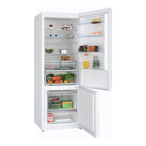 El frigorífico combi no frost Bosch KGN56XWEA combina eficiencia, capacidad y diseño en un solo electrodoméstico. Con tecnologías innovadoras y un diseño cuidado, se adapta perfectamente a las necesidades de tu hogar.