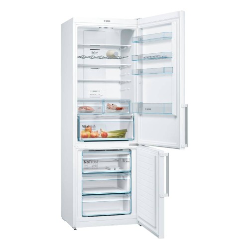 El frigorífico combi No Frost Bosch KGN49XWDP Serie 4 es una elección destacada para mantener tus alimentos frescos y bien organizados en tu hogar.