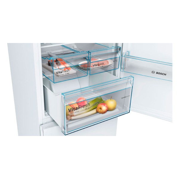 El frigorífico Bosch KGN36XWDP Serie 4 representa la combinación perfecta de diseño, tecnología y eficiencia. Con su capacidad generosa, sistema No Frost, y características especiales como el cajón VitaFresh y la iluminación LED, este modelo es una elección excepcional para quienes buscan mantener sus alimentos frescos en un electrodoméstico que combina estilo y funcionalidad.