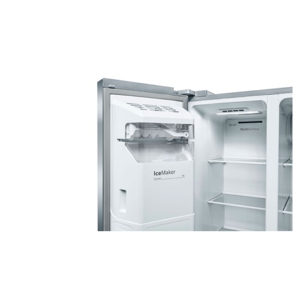 El frigorífico cuenta con un diseño americano de dos puertas, separando eficientemente la zona de refrigeración de la de congelación para una mejor organización y conservación de los alimentos.