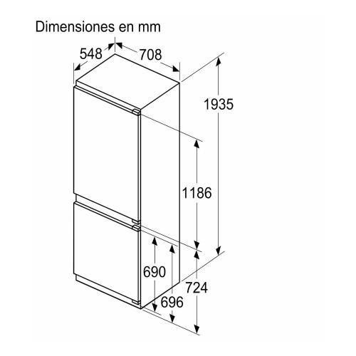 Este frigorífico integrable destaca por su capacidad de fusionarse con el mobiliario de tu cocina, manteniendo el diseño elegante y funcional. La distribución interna se divide entre la zona de refrigeración en la parte superior y el congelador abajo.