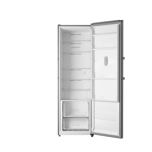 Con un acabado en acero inoxidable y puertas con tiradores externos, este frigorífico de una puerta es fácil de mantener y usar. Incorpora iluminación LED y cuenta con 5 bandejas y 2 cajones Fresh Box, asegurando una organización óptima. Su display digital externo te permite controlar la temperatura sin necesidad de abrirlo.