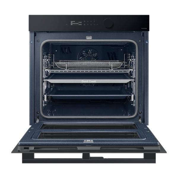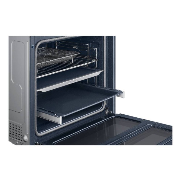 Cocina más platos con mayor flexibilidad y eficiencia gracias a las zonas superior e inferior de Dual Cook Flex, que funcionan de manera independiente. Puedes utilizar la parte de arriba para cocinar platos pequeños, usar ambas a la vez con distintos ajustes de tiempo y temperatura o emplear el horno entero para preparar platos grandes. Además, la puerta con bisagra te permite acceder a la parte de arriba fácilmente.