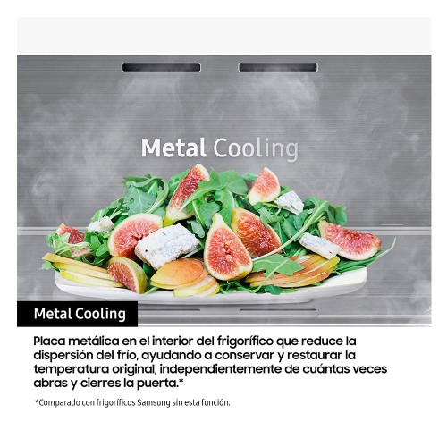Gracias a la tecnología Metal Cooling mantendrás una temperatura óptima para que tus alimentos estén siempre frescos. Una placa, una balda y un conducto plano metálicos reducen la dispersión del frío, ayudando a conservar y restaurar la temperatura original, aunque se abra constantemente.