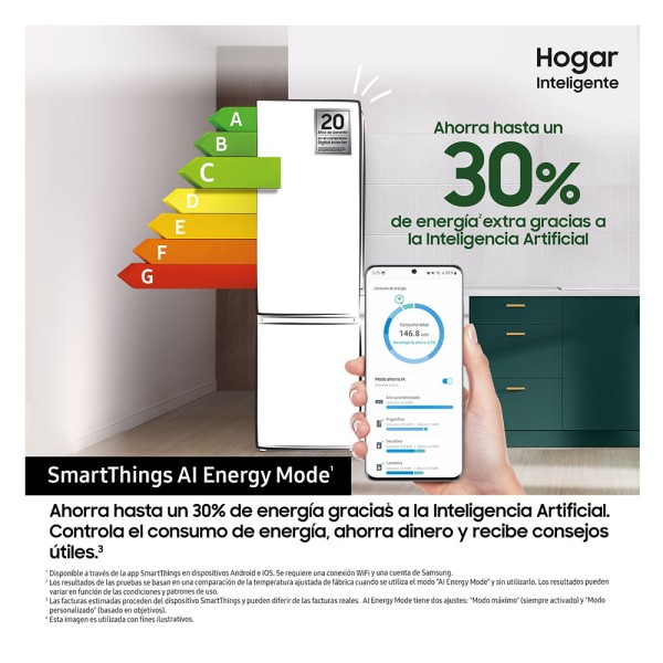 Toma el control de tu consumo energético, reduce tu huella de carbono y ahorra dinero. SmartThings Energy* te da consejos para ahorrar energía y monitoriza el consumo de tus electrodomésticos** en tiempo real para compararlo con el del mes anterior.