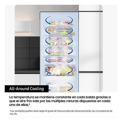 No pierdas el tiempo y energía descongelando. La tecnología No Frost optimiza la circulación del aire para mantener una temperatura constante, evitando la acumulación de escarcha. También enfría mucho más rápido, optimizando el trabajo del sistema de refrigeración y aumentando su durabilidad.