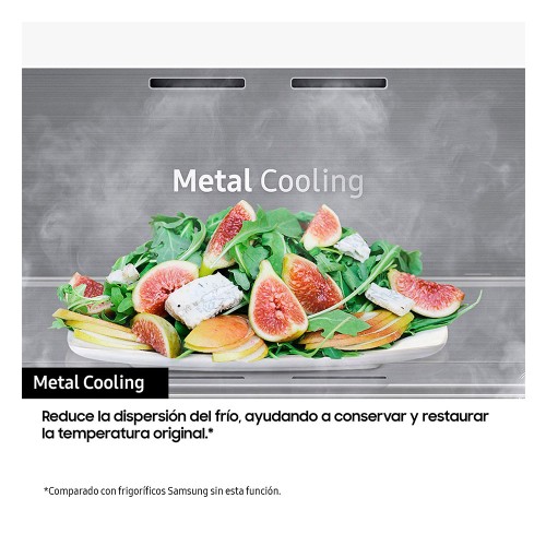 Gracias a la tecnología Metal Cooling mantendrás una temperatura óptima dentro del frigorífico para que tus alimentos estén siempre frescos. Una placa, una balda y un conducto plano metálicos reducen la dispersión del frío, ayudando a conservar y restaurar la temperatura original, independientemente de cuántas veces abras y cierres la puerta. Además, su aspecto es elegante y se limpia fácilmente.