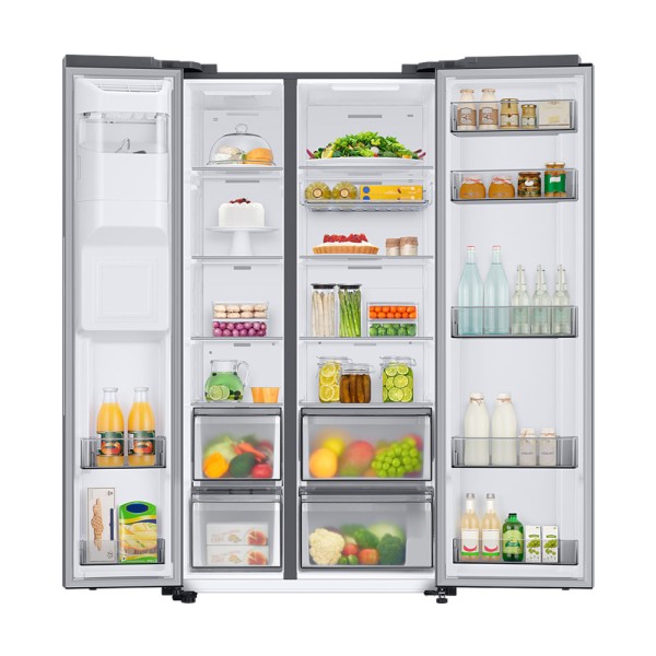 Almacena más alimentos en su espacioso interior de 634 L. La tecnología SpaceMax™ permite que las paredes sean mucho más finas para dar más espacio de almacenamiento sin aumentar las dimensiones externas. Además, al tener el centro de bebidas en el frigorífico, la capacidad del congelador aumenta 11 L****.