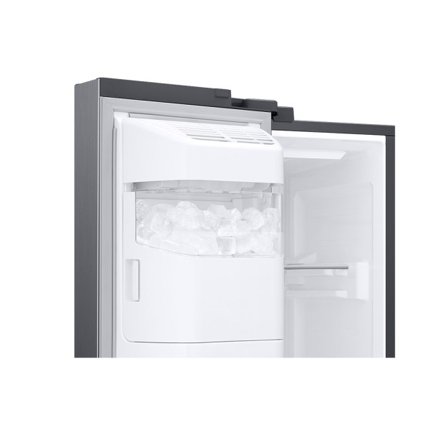 Consigue más espacio para almacenar alimentos sin renunciar a tener hielo gracias al dispensador integrado en la puerta. Su ubicación libera espacio en el congelador y te permite fabricar y mantener gran cantidad de hielo. Además, la cubierta de plástico transparente permite controlar lo que queda.