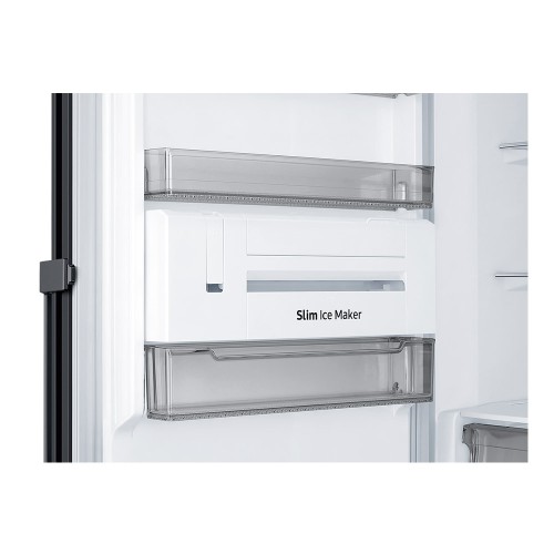 La máquina de hielo compacta está integrada en la puerta para ocupar menos espacio en el congelador y ofrecerte un extra de hueco en las baldas. Sin embargo, no te quedarás sin hielo: almacena hasta 5 veces la cantidad que puede fabricar y dispensa los cubitos con un simple giro.