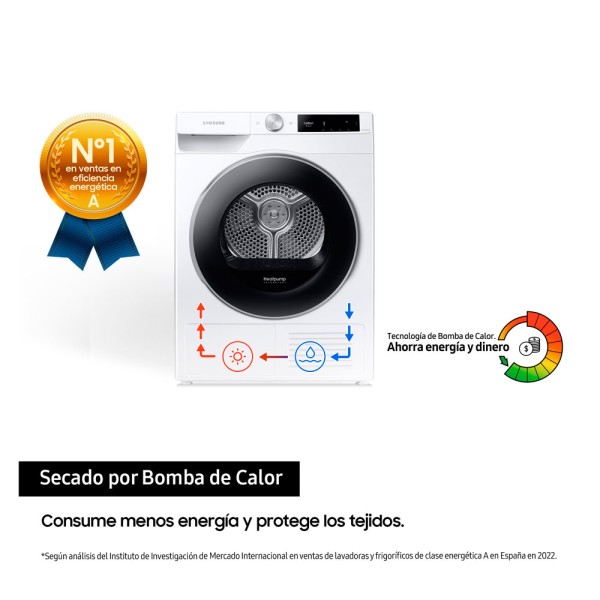 Ahorra dinero y protege el medio ambiente reduciendo tu consumo eléctrico. La tecnología bomba de calor ofrece una manera más eficiente, rentable y delicada de secar tu ropa, ya que utiliza “refrigerante” en lugar de electricidad para calentar el aire y lo recicla para no malgastar energía.