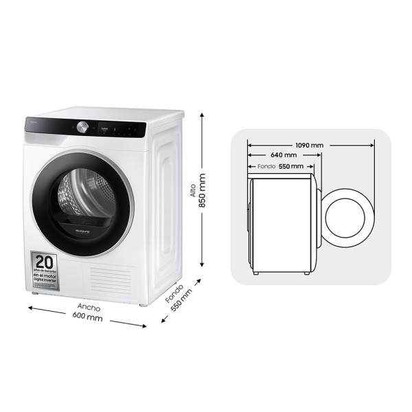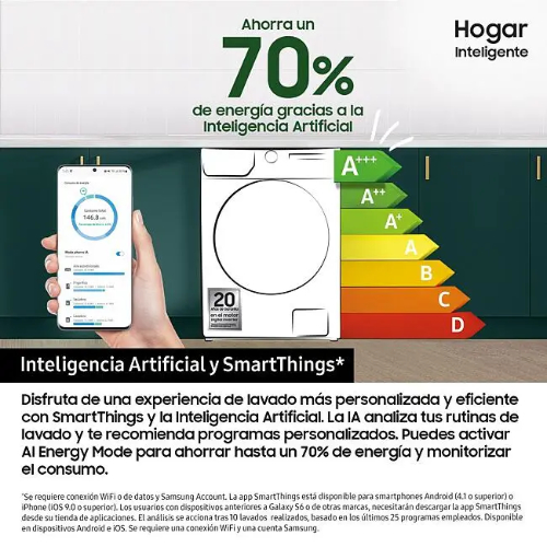 Seca la ropa de manera más fácil y efectiva. La nueva función de las secadoras Samsung recuerda tus hábitos de secado y te sugiere programas en función a tu colada. A través de la app SmartThingsTM recibirás consejos sobre programas y soluciones de problemas. Y además, con Auto Cycle Link, te recomendará el programa de secado perfecto para la colada que acabas de lavar.