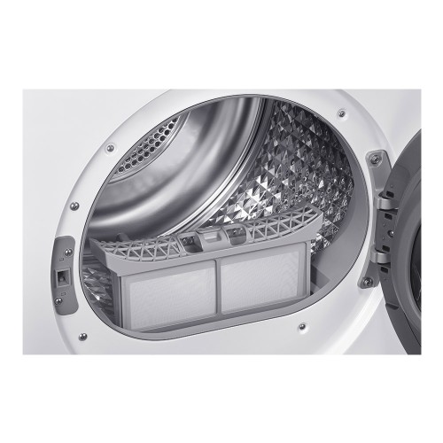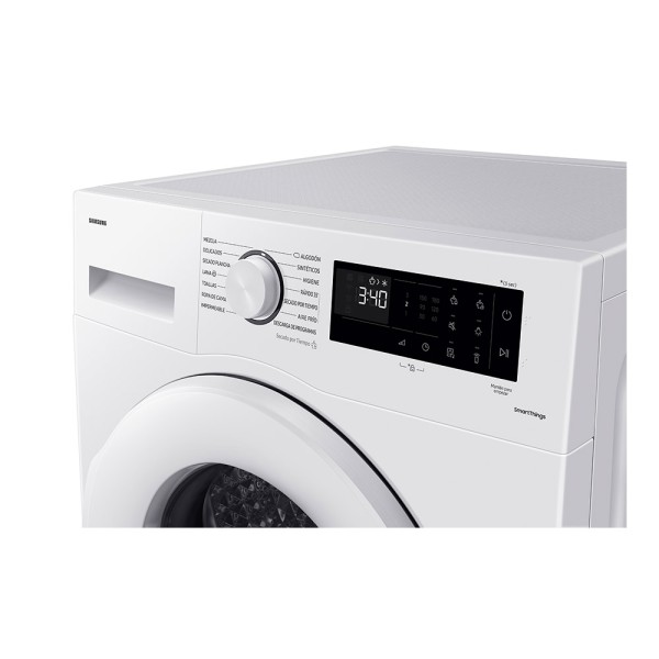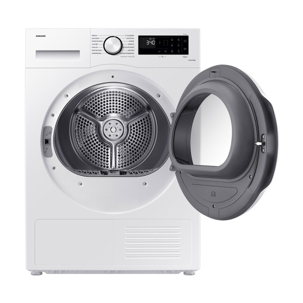 Puerta reversible; Bloqueo Infantil; Tipo de tambor: Diamante; Niveles de secado: 3; Bandeja de secado; Selector de tiempo de secado: 3 niveles; Carga mixta/alerta de humedad; Prevención de arrugas; OptimalDry SystemDisplay LED; Bomba de calor; A+++; Consumo: 194 kWh/año; Eficiencia de condensación: B; Ruido: 65 dB; Motor Digital Inverter; WiFi integrado; SmartThings.