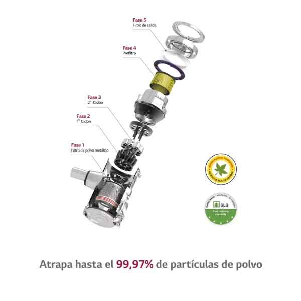 Comprime el polvo y el pelo en el depósito: hasta hasta 2,4 veces más de capacidad