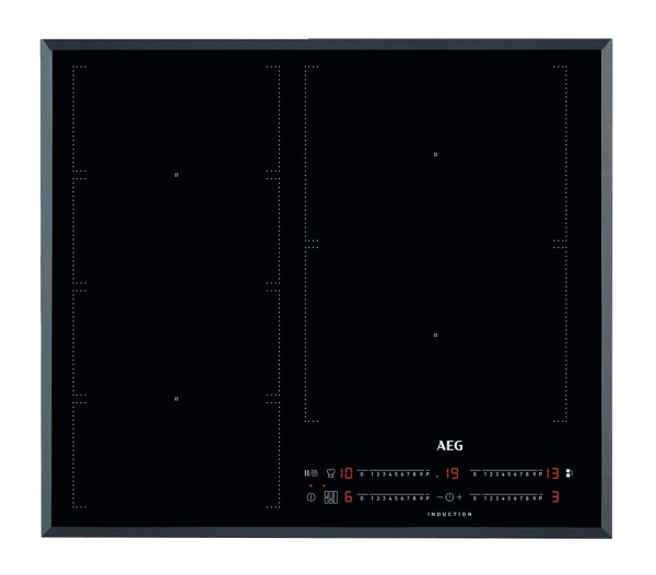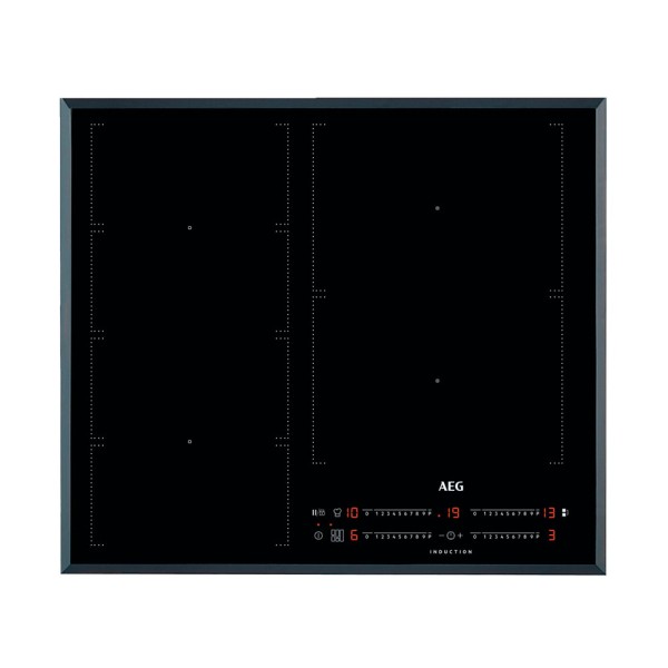 Placa de inducción biselada extraplana de 60 cm con 4 zonas Power, 1 zona Flexipuente + 1 Zona Puente, potencia 7.350 W, Control táctil deslizante con función PowerBoost, temporizador en cada zona y función Pausa