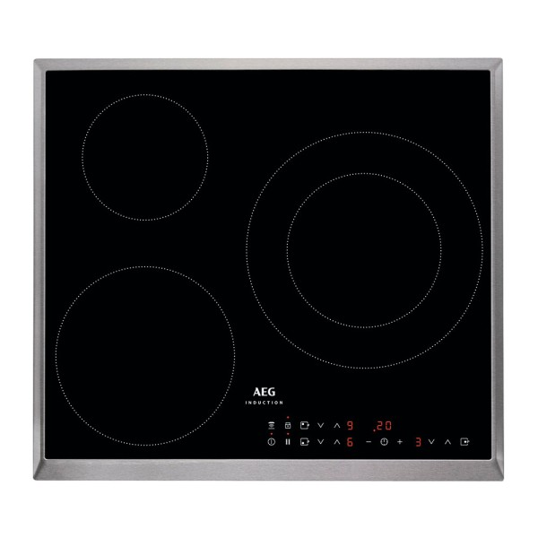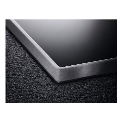 Placa de inducción flexible de 60 cm extraplana con marco de acero inoxidable y 3 zonas, una de ellas de 28 cm y 3,7 kW cm, controles táctiles, función Pausa, funcíon PowerBoost de calentamiento rápido y sistema Hob2Hood de conexión automática con una campana compatible.