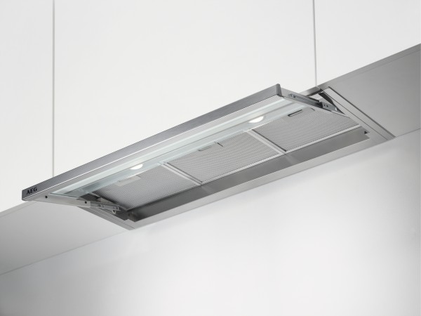 Un diseño de campana extractora que se integra casi invisiblemente con el mobiliario de cualquier cocina. La campana se oculta completamente cuando no está en uso, instalada al ras, ofreciendo un aspecto impecable de diseño actual y optimizando al mismo tiempo el espacio de cocción.