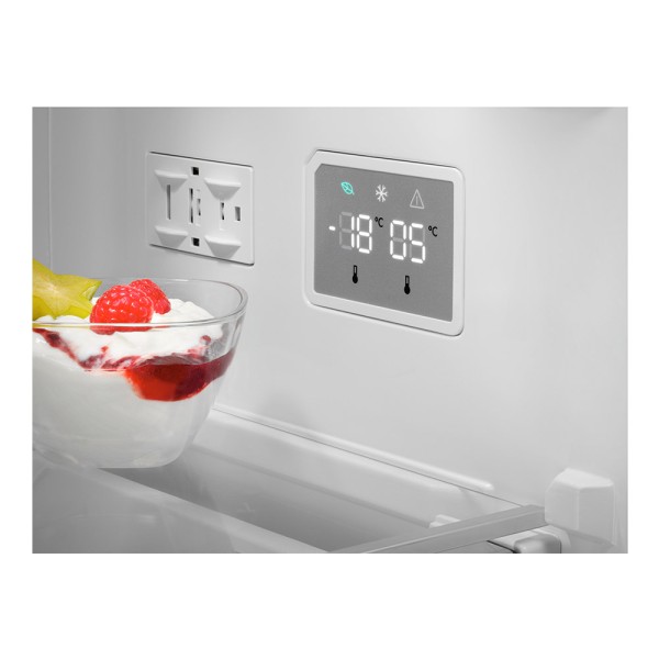 Con TwinTech® No Frost nunca hace falta descongelar el aparato. Su doble sistema de refrigeración mantiene los alimentos un 60 % más hidratados que los frigoríficos con un solo evaporador. Al no utilizar aire del congelador, mantiene el grado ideal de humedad y evita que los alimentos se sequen.