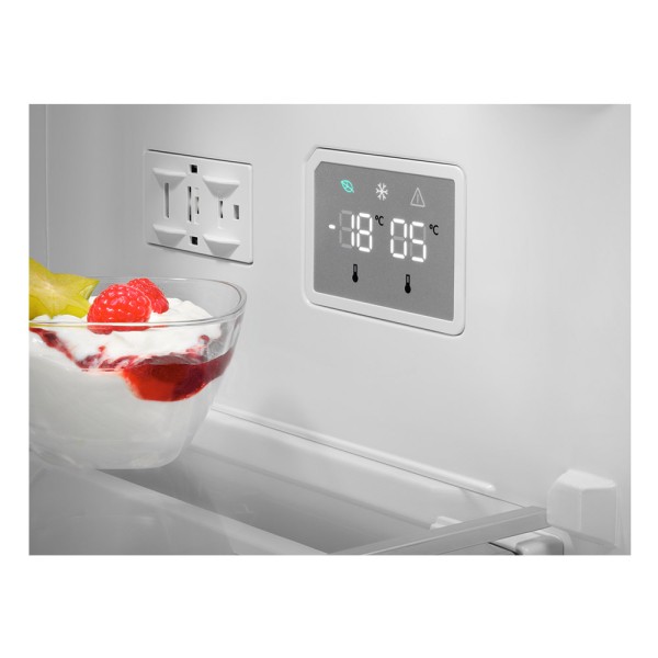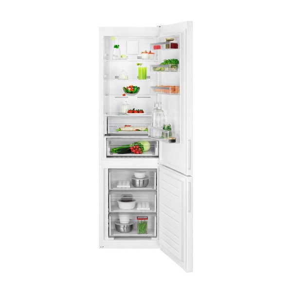 Frigorífico Combi de la Serie 6000 Twintech MultiFlow de 2,01 mts y 60 cm de ancho, display LED en el interior, Cajón ExtraChill, Tirador integrado, luces LED, Puerta plana blanca
