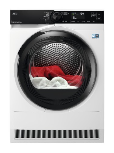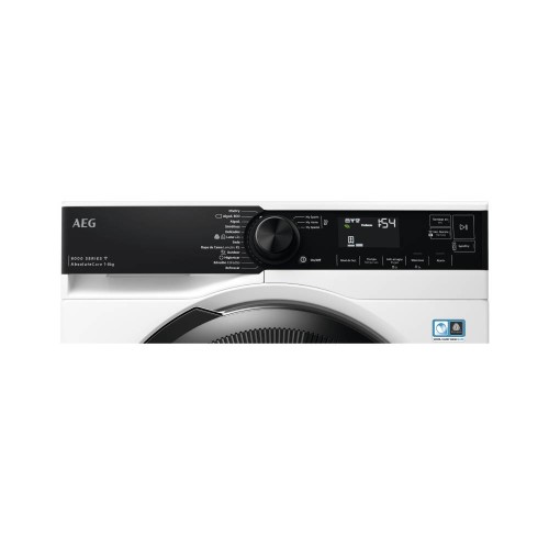 Secadora AEG conectada de 8 Kg con Bomba de Calor de la Serie 8000 con motor Inverter, filtro OkoFlow, Certificado Woolmark Blue, Display LED Blanco, puerta Negra y panel Negro, sistema AbsoluteCare que adapta el secado a cada tipo de tejido, tecnología SensiDry que ofrece un secado suave y eficiente y tecnología PreciseDry que ahorra tiempo y energía.