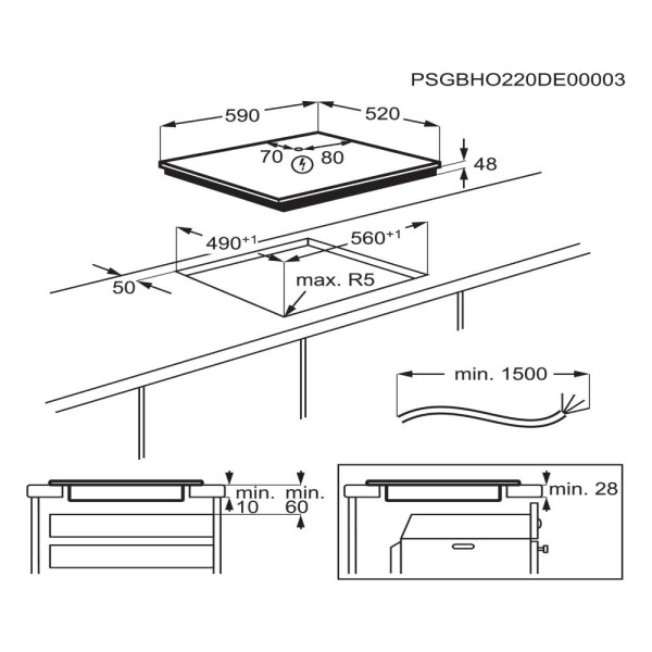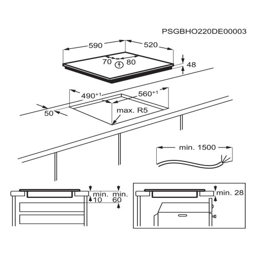 Placa de inducción Serie 300 Induction de 3 zonas y 60 cm, Controles (0-9 con 4 zonas PowerBoost), Bloqueo de seguridad, Indicador del calor residual, Sin Marco