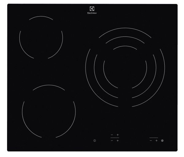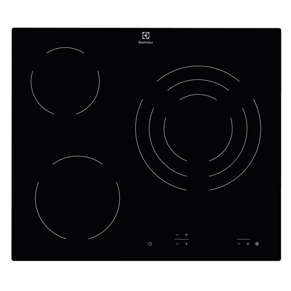 Placa vitrocerámica Vitrocerámica de 3 zonas y 60 cm, 1 zona triple 27 cm, Controles (0-9), Indicadores de calor residual, Bloqueo de seguridad