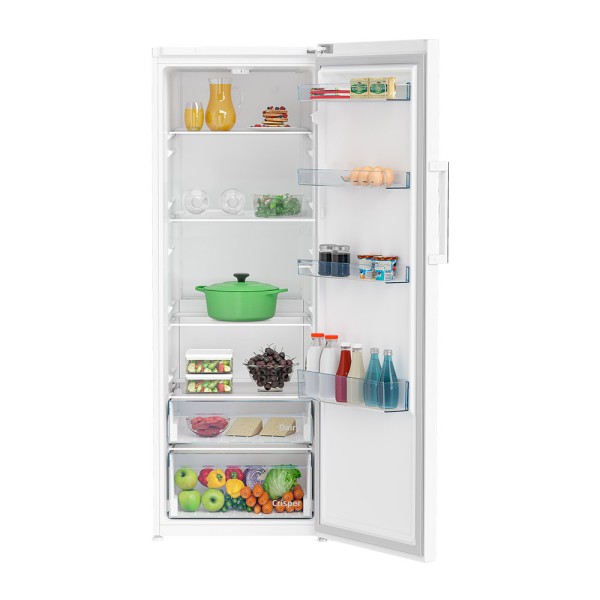 Beko RSSE415M41WN. Frigorífico, capacidad neta: 367 L, Clase climática: SN-T, Nivel de ruido: 38 dB. Frigorífico, número de compartimentos: 5, Número de compartimientos para verduras: 2. Tipo de lámpara: LED. Bisagra para puerta: Derecho. Consumo de energía anual: 143 kWh, Clase de eficiencia de energía: E. Peso: 62,4 kg. Color del producto: Blanco