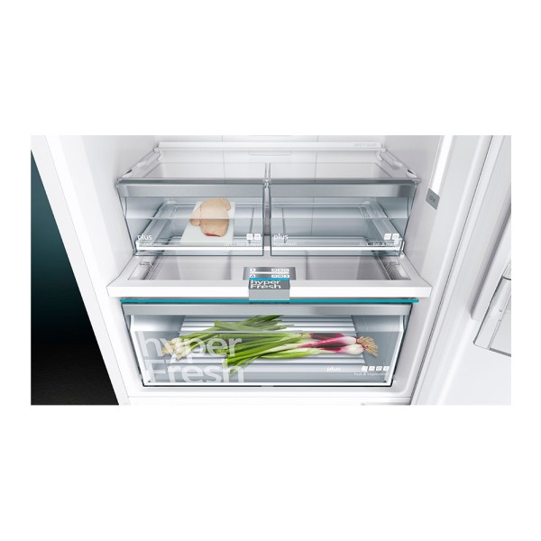 Se acabó el descongelar el frigorífico para conservar correctamente los alimentos y no malgastar energía. La tecnología noFrost extrae la humedad y mantiene seco el aire dentro del frigorífico. Esto evita que se forme escarcha en las paredes interiores o los alimentos, para que no tengas que descongelarlo nunca. Además, ahorra energía, porque un congelador sin escarcha consume menos.