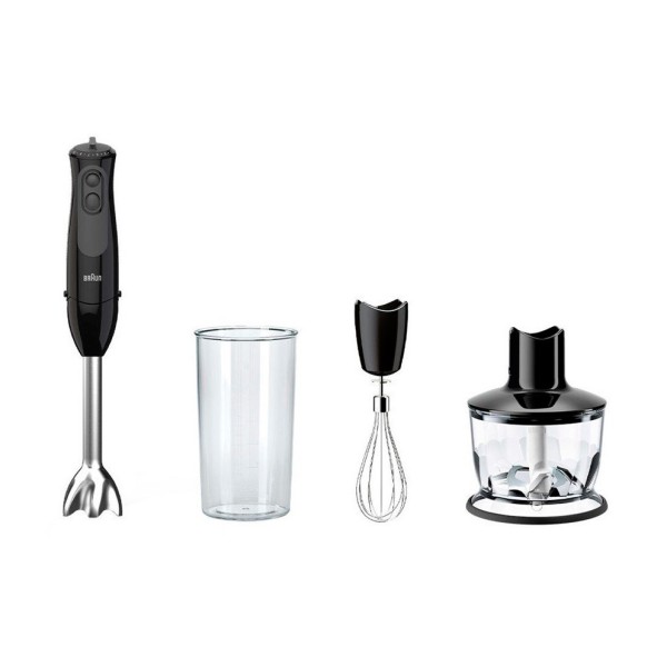 Vaso de 600ml de plástico, libre de BPA, con medidas en ml y fl oz.; Varillas: Mezcla y monta fácilmente huevos, cremas, y postres esponjosos, con velocidades bajas y altas; Picadora: Pica carne, queso duro, nueces, hierbas y zanahorias en segundos.