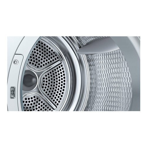 Esta secadora no se limita a ejecutar un programa en un tiempo definido. Sino que es capaz de detenerse automáticamente cuando la ropa ya está seca. Para ello tiene un sensor que mide el grado de humedad de las prendas en cada momento del ciclo. Así la secadora sabe exactamente cuándo debe parar, ahorrando tiempo y energía.