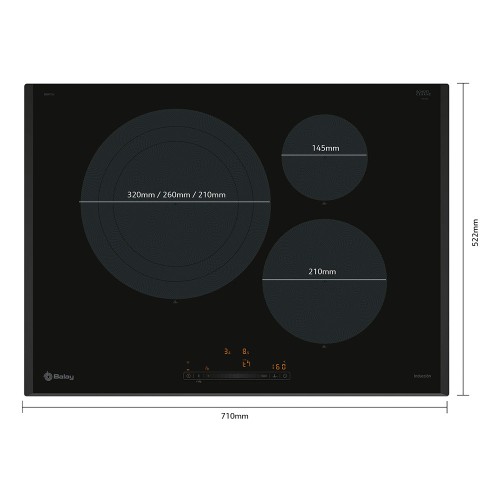 Las placas de Inducción Balay ofrecen unas extraordinarias prestaciones y una asombrosa facilidad a la hora de limpiarlas, ya que lo que se calienta no es la superficie de la placa sino el recipiente; por eso los alimentos derramados no se queman. Y por esa misma regla, tampoco te quemarás tú. Y para sacarle el máximo partido, la batería de cocina Balay, obtiene toda la potencia de la zona de cocción y la distribuye de forma homogénea por toda la superficie.