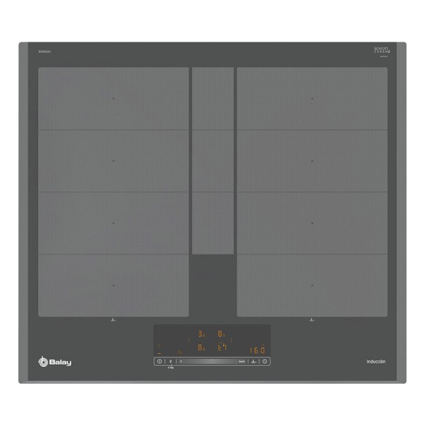 Las placas de Inducción Balay ofrecen unas extraordinarias prestaciones y una asombrosa facilidad a la hora de limpiarlas, ya que lo que se calienta no es la superficie de la placa sino el recipiente; por eso los alimentos derramados no se queman. Y por esa misma regla, tampoco te quemarás tú. Y para sacarle el máximo partido, la batería de cocina Balay, obtiene toda la potencia de la zona de cocción y la distribuye de forma homogénea por toda la superficie.