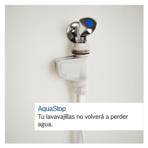 Un buen lavavajillas nunca debería perder agua, por eso nuestro sistema AquaStop te ofrece la máxima protección. Cuando el sensor detecta una fuga, el lavavajillas deja de funcionar automáticamente y extrae el agua para evitar daños. Este sistema está garantizado durante toda la vida útil del electrodoméstico.