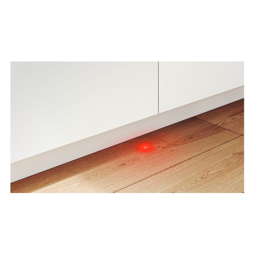 InfoLight consiste en una proyección de luz LED roja en el suelo de tu cocina que te informa si tu lavavajillas totalmente integrable continúa en funcionamiento. Sabrás que el programa ha finalizado porque la luz que se proyecta desaparece.