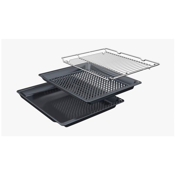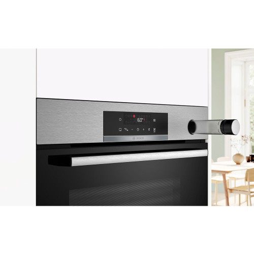 Apertura abatible con sistema softMove: la puerta del horno se abre y se cierra de forma suave y segura, sin golpes.