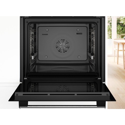 Apertura abatible con sistema softMove: la puerta del horno se abre y se cierra de forma suave y segura, sin golpes.