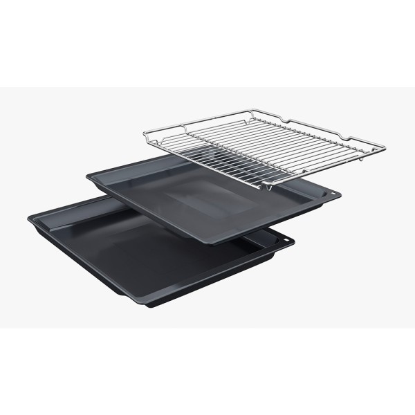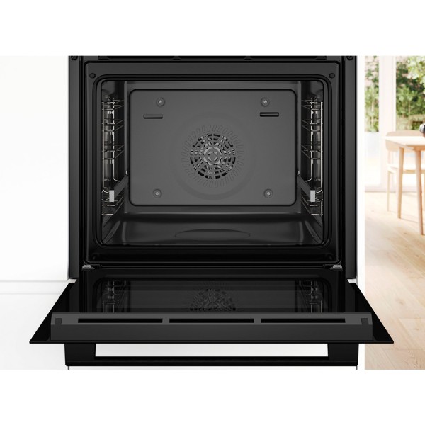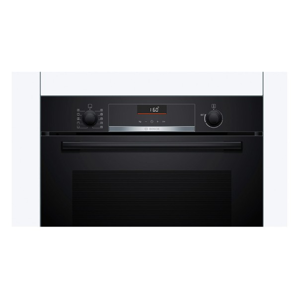 Bosch Serie 4 HBG536EB3. Tamaño del horno: Medio, Tipo de horno: Horno eléctrico, Total capacidad interior, horno (s): 71 L. Tipo de instalación: Integrado, Color del producto: Negro, Tipo de control: Giratorio, Tocar. Tipo de temporizador: Digital. Clase de eficiencia de energía: A+, Escala de eficiencia energética: A+++ a D, Voltaje de entrada AC: 220-240 V. Cantidad de lámparas: 1 lámpara(s), Tipo de lámpara: Halógeno