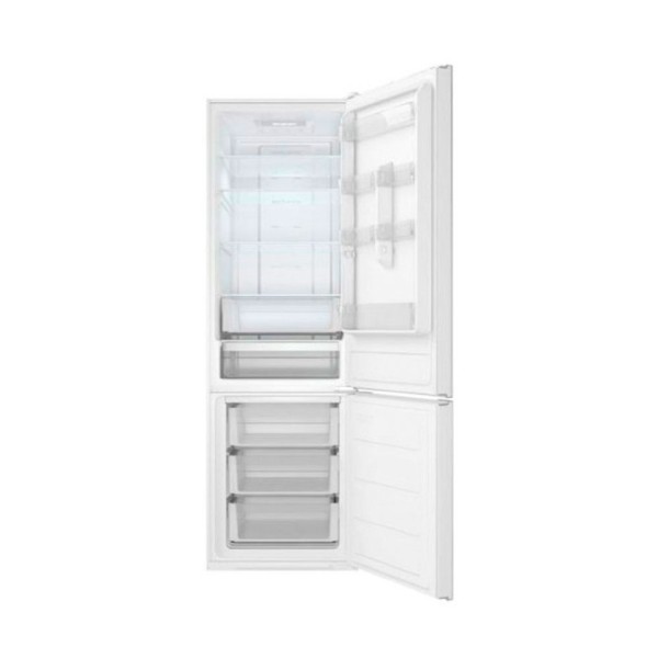 Este modelo luce un acabado en blanco, lo que facilita su limpieza y aporta un toque moderno a tu cocina. Las puertas con tiradores integrados proporcionan un aspecto visual limpio y elegante. En su interior, cuenta con iluminación LED, bandejas de cristal de seguridad ajustables en altura, dos cajones Fresh Box y un botellero cromado. Además, dispone de balcones ajustables en la puerta y cajones de cristal de seguridad en el congelador. La puerta incluye una pantalla electrónica para un control sencillo de la temperatura y diversas funciones, junto con un sistema antibacterias en la goma de cierre para mayor seguridad alimentaria.