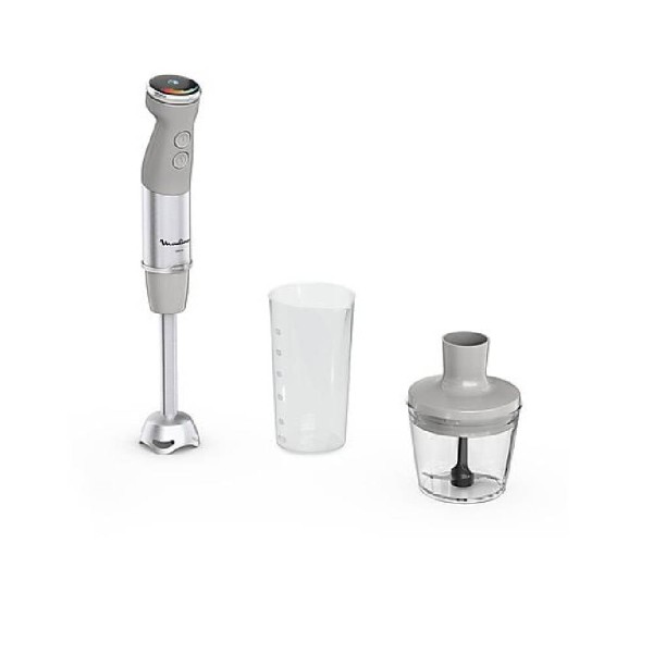Un electrodoméstico moderno que pone a tu disposición sus prestaciones para mejorar tu experiencia de batido: un asa ergonómica Soft Grip, un robusto cuerpo metálico y un protector antisalpicaduras.