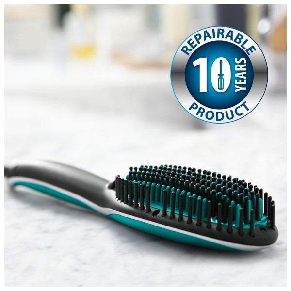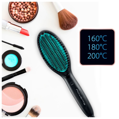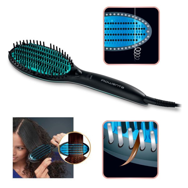 - Más rápido que una plancha alisadora, ¡con un ahorro de tiempo de hasta el 33 %! - Cepillo alisador diseñado específicamente para cabellos encrespados, muy encrespados y rizados - Alisado de triple acción gracias a los 40 captadores de raíces, a la malla de dos tipos de cerdas y a las 100 cerdas térmicas con revestimiento cerámico - Generador iónico con acción antiencrespamiento y resultados brillantes y sin electricidad estática - Temperatura ajustable de 160 °C/180 °C/200 °C para cabellos finos y gruesos - Tecnología Thermo Control que aporta un calor constante y homogéneo seguro para el cabello y perfecto para el alisado - Reparable durante 15 años en 6200 centros de reparación en todo el mundo