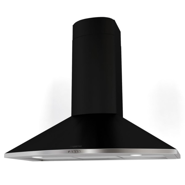 La campana extractora decorativa Mepamsa Tender H, de diseño piramidal para pared, añade una elegancia única a tu cocina con su acabado en acero negro fundición. El cuerpo piramidal tiene dimensiones de 69,8 cm de largo, 48,3 cm de ancho y 24 cm de altura.